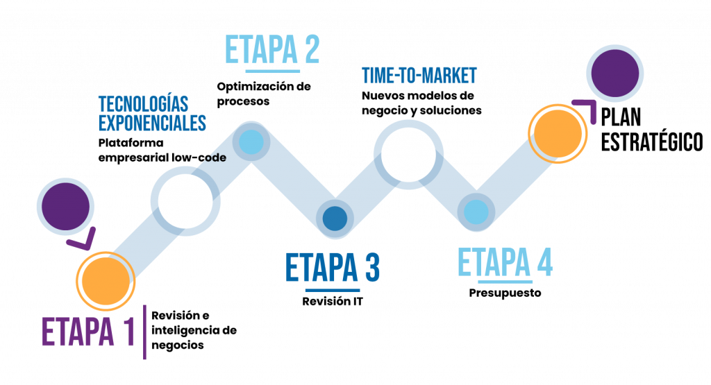 A través de un grupo de profesionales con experiencia en las industrias financiera y educativa, ofrecemos un “strategic playbook” de 4 semanas orientado al diseño de un plan estratégico del “journey” de la transformación digital de tu institución.